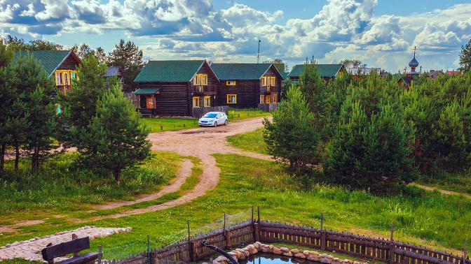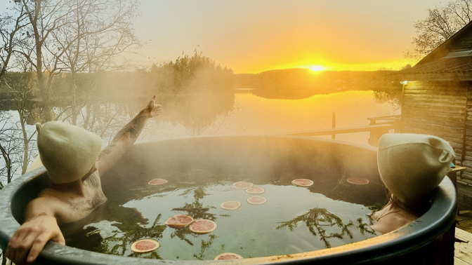 Отдых на берегу озера с 3-разовым питанием, посещением бани и банного чана в экоотеле «Киногородок»