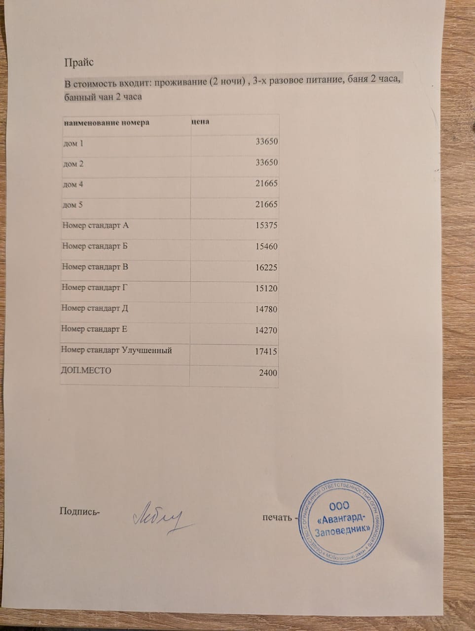 — Скидка 35% на отдых для двоих в номере категории стандарт Б в течение 3 дней/2 ночей с 3-разовым питанием, посещением бани и банного чана (10 049 руб. вместо 15 460 руб.)